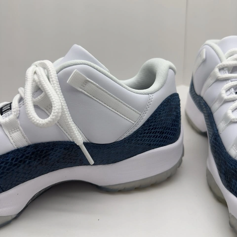 A must-have for any collector, this pair is a faithful retro of the original 2001 release. Released in April 2019, the "Navy Snakeskin" swaps out the signature patent leather for a premium reptilian texture, offering a unique twist on one of the most beloved Jordan silhouettes. Features: Clean white leather upper, navy snakeskin-patterned mudguard, and a white sculpted Phylon midsole. Finished with a classic icy translucent outsole and minimal branding for a sleek, high-end look. Feel free to ask any questions related to shoes.