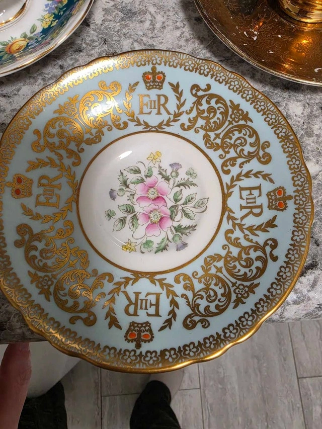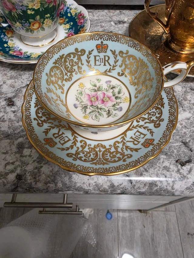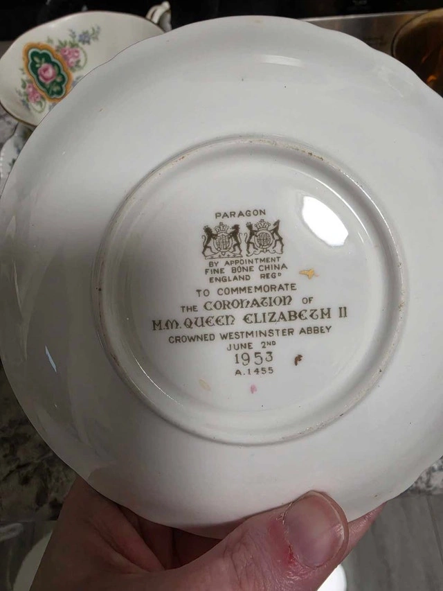 Here we have a lovely used Paragon fine bone china teacup and saucer, commemorating the coronation of Queen Elizabeth II in 1953. It's a beautiful piece of history, and while it's been around the block (or at least 70 years!), it's still in good condition. Perfect for collectors or anyone who enjoys a spot of tea with a side of regal charm. While I can't guarantee this teacup will make you feel like royalty, it will definitely add a touch of elegance to your tea time. If the ad is up, it's available! Payment accepted: Cash, Cashless payment.