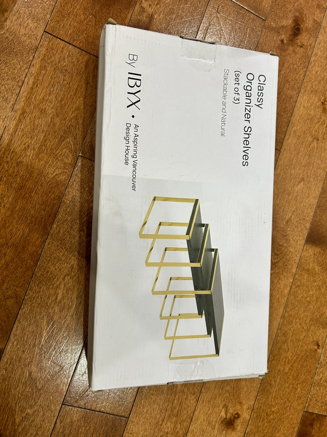 10Selling a set of IBYX Classy Organizer Shelves! This set includes three stackable and natural shelves, perfect for adding a touch of modern design to your space. The shelves are brand new and come in their original packaging!