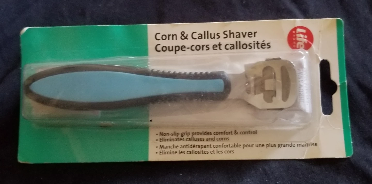 This Life Brand Corn & Callus Shaver includes 1 trimmer with blade and 2 replacement blades. It features a non-slip grip for comfort and control. Eliminates calluses and corns. Blades are sharp, so use with caution.