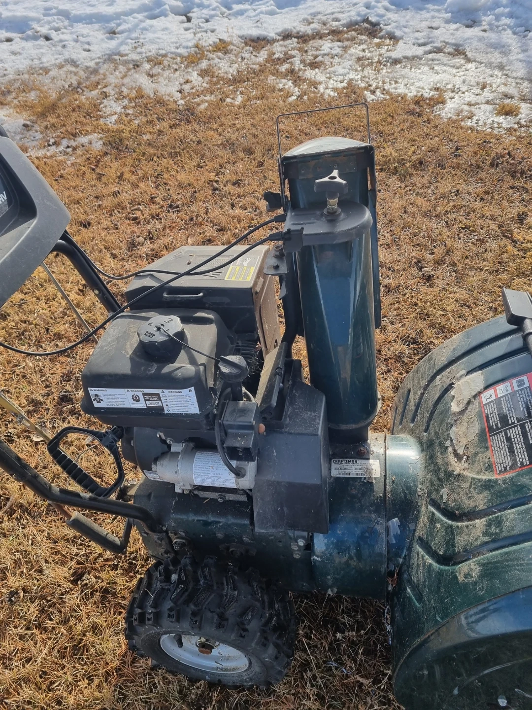 This is a Craftsman snow blower with a 24-inch clearing width and a 6.0HP OHV engine. It's a gas-powered machine ready for winter.