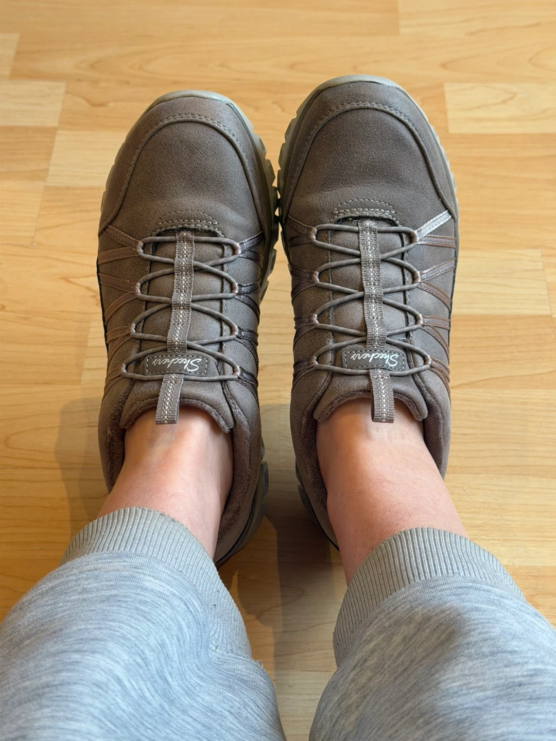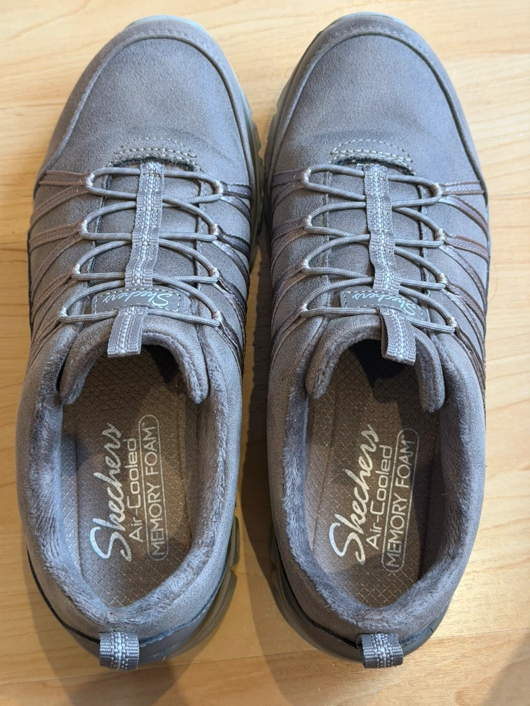 Skechers Hands Free Slip-Ins women's sneakers in taupe. Features Air-Cooled Memory Foam insoles. Textile and man-made upper. These shoes offer convenient slip-on wear. Great for everyday activities!