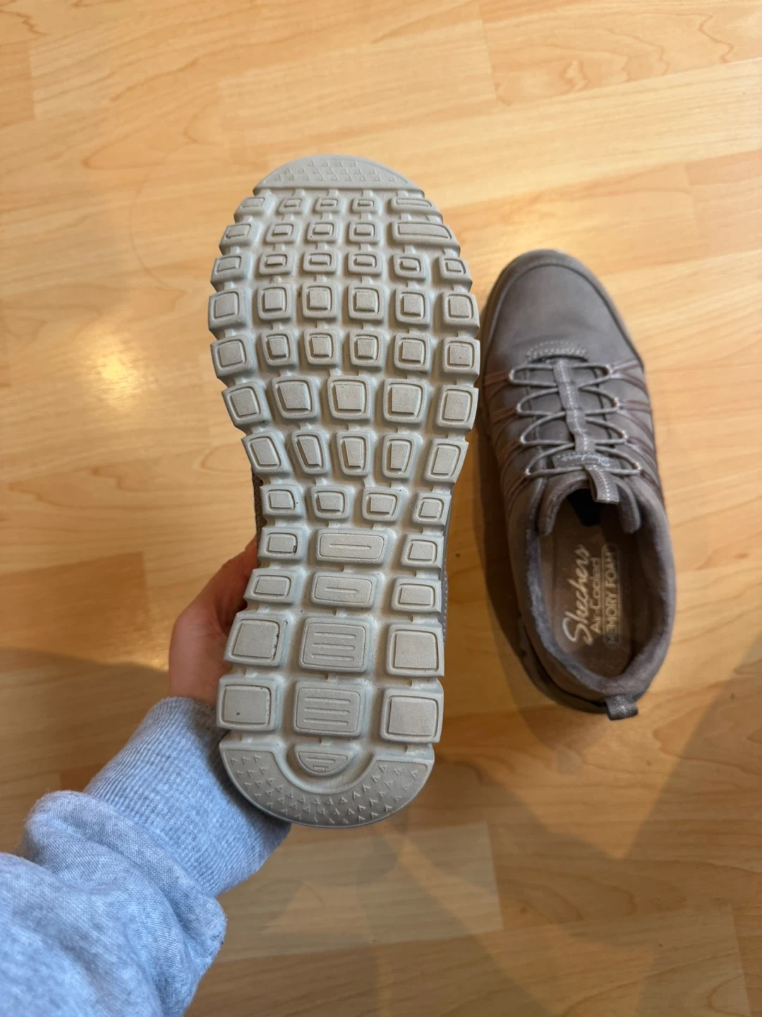 Skechers Hands Free Slip-Ins women's sneakers in taupe. Features Air-Cooled Memory Foam insoles. Textile and man-made upper. These shoes offer convenient slip-on wear. Great for everyday activities!