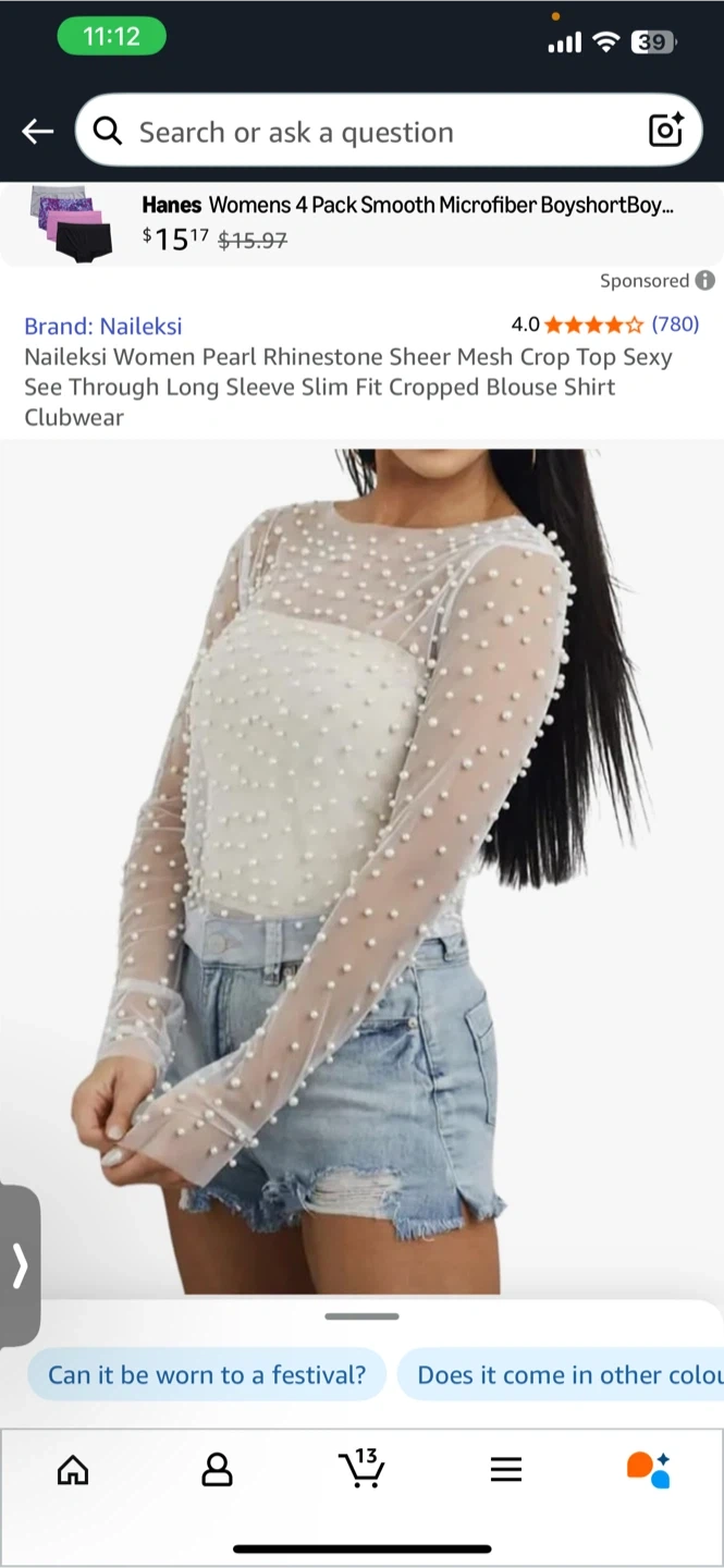 Selling a Naileksi sheer mesh crop top with pearl rhinestone detailing! This long-sleeve, slim-fit blouse shirt is perfect for clubwear or a night out. It's a unique and stylish piece to add to your wardrobe