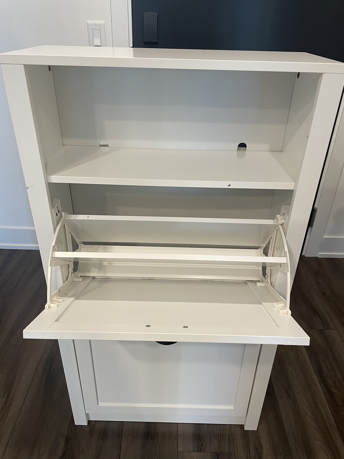 We are selling it because we need bigger shoe cabinet now. It can be disassembled if you want. Pick up only.