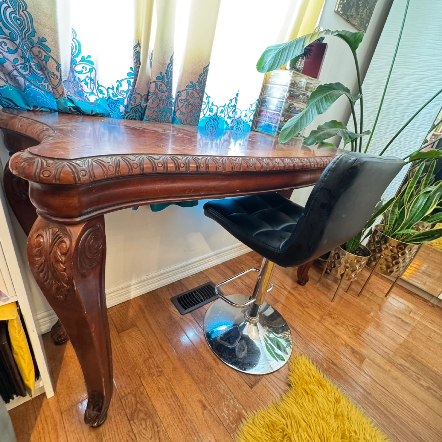 Ornate Wooden Console Table with Carved Legs