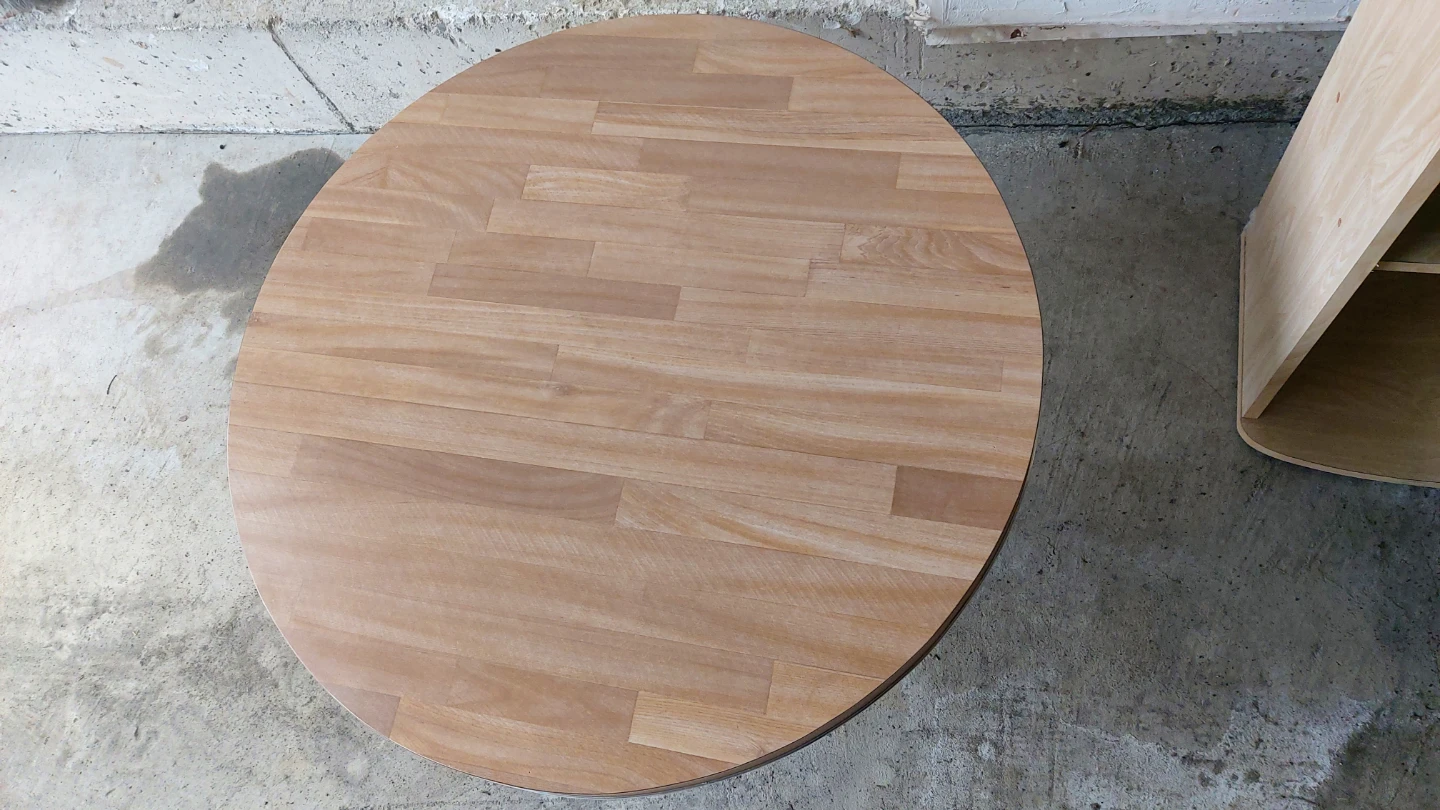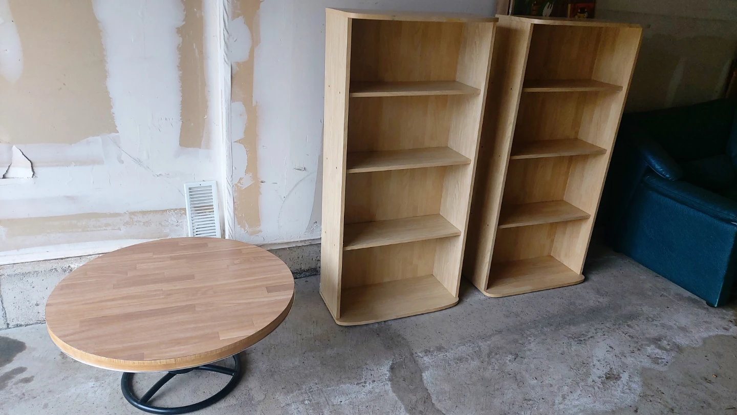 Two book selves and round table