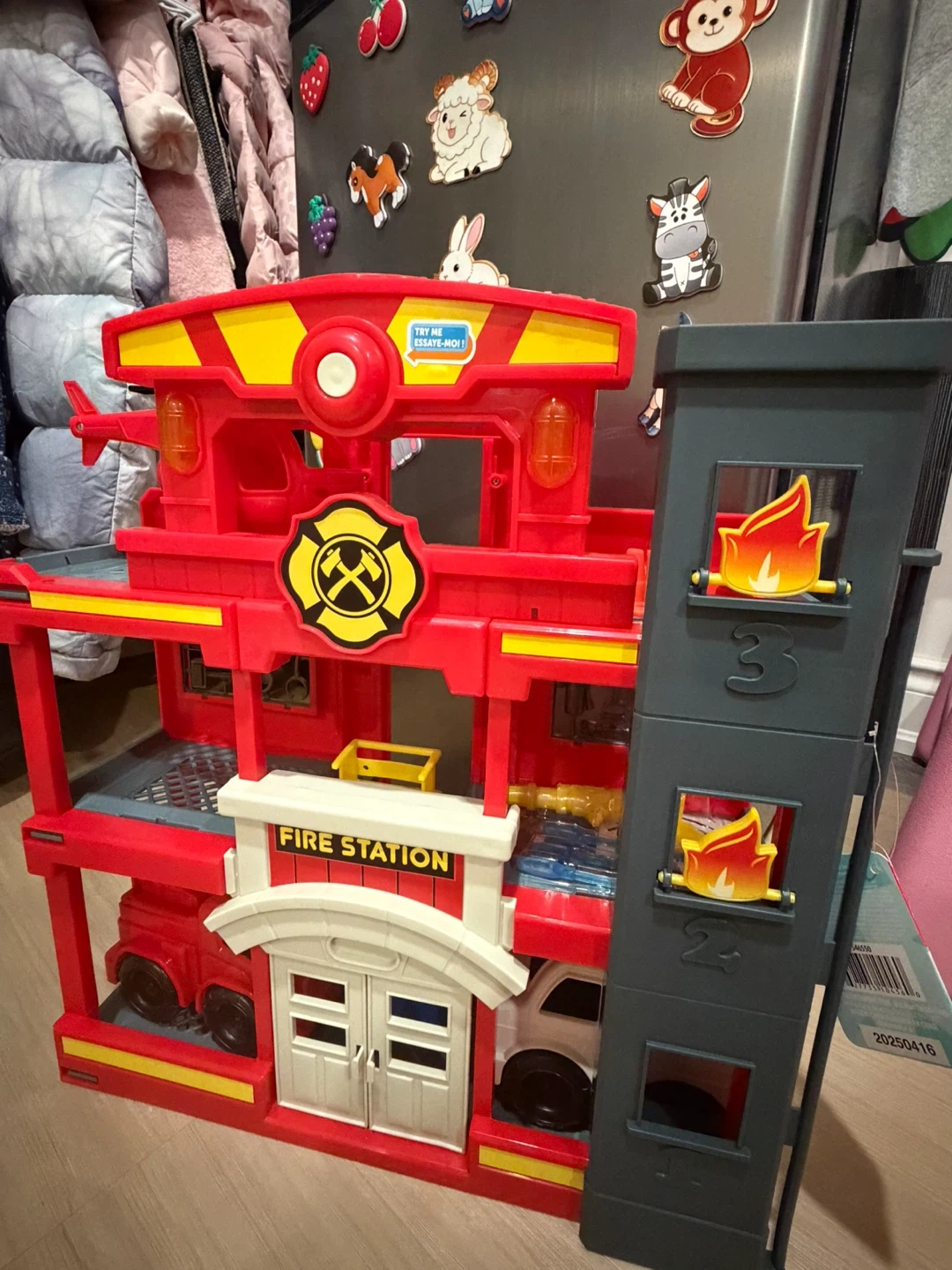 This Kid Connection Fire Station playset comes with 31 pieces for hours of fun. It's designed for ages 3 and up. A great playset for little firefighters!