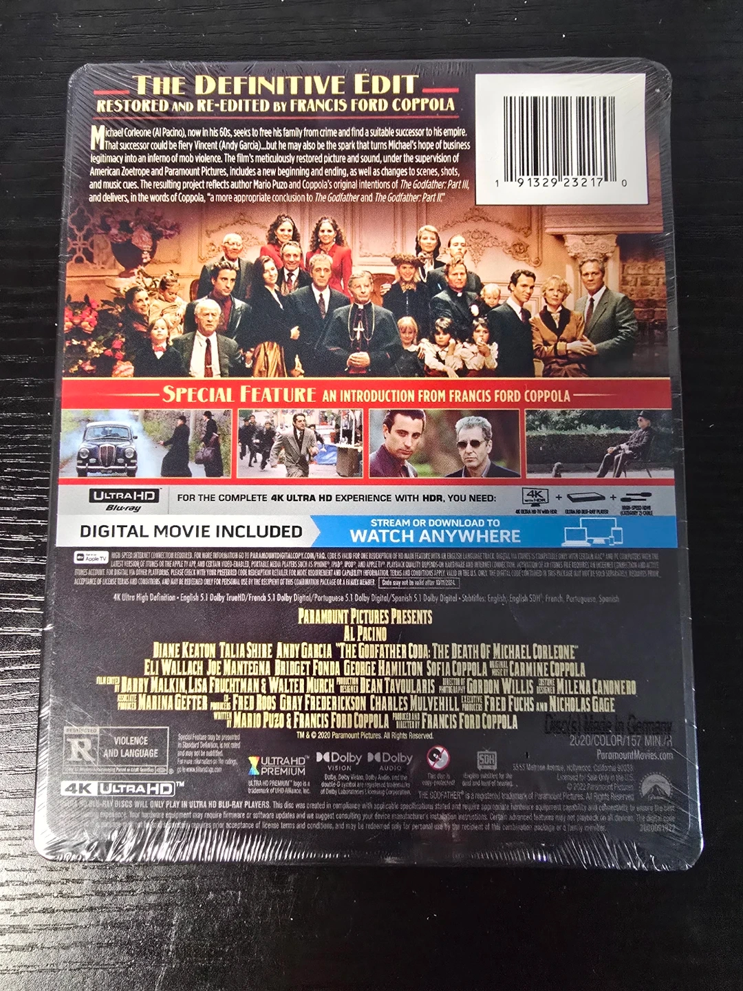 This is The Godfather Coda: The Death of Michael Corleone 4K Ultra HD Blu-ray. It's the definitive restored edition by Francis Ford Coppola. Includes digital code.