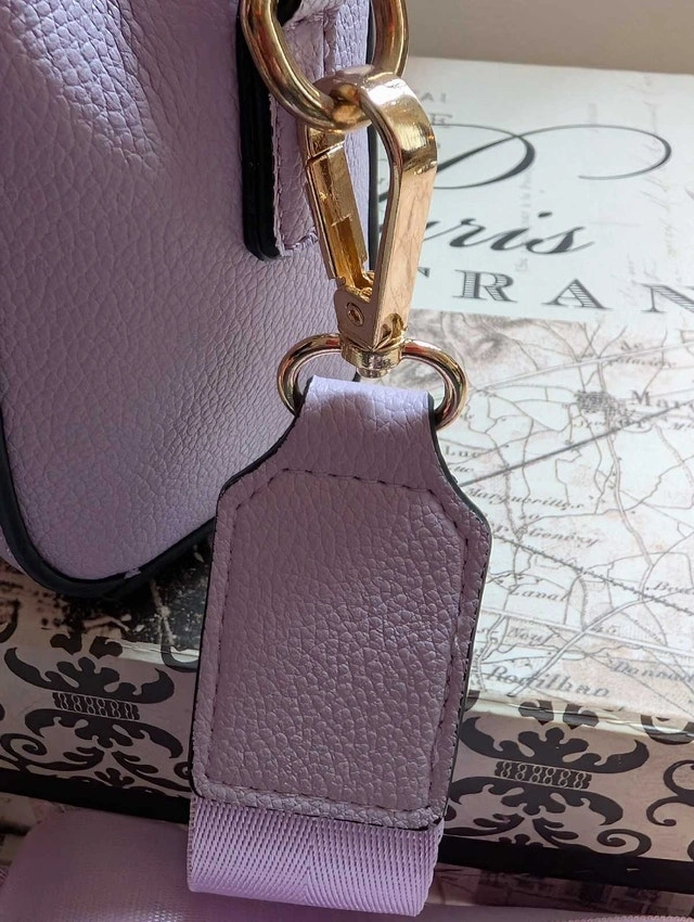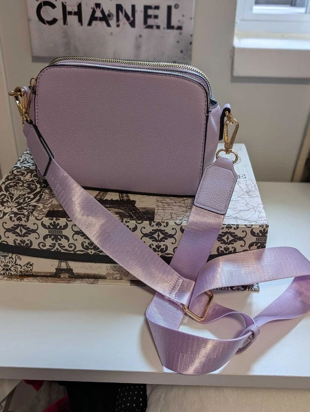 Super cute and Mauve handbag. It's got a great strap which can be worn as a shoulder bag or crossbody, and it's adjustable. This bag has three top zippered pockets, and the lining is a cute, crisp looking blue and white pinstripe which makes it easy to find all your things. Pick up area Grantham Ave and Carlton Street. From a very clean smoke-free home. Please see my other ads, thank you.