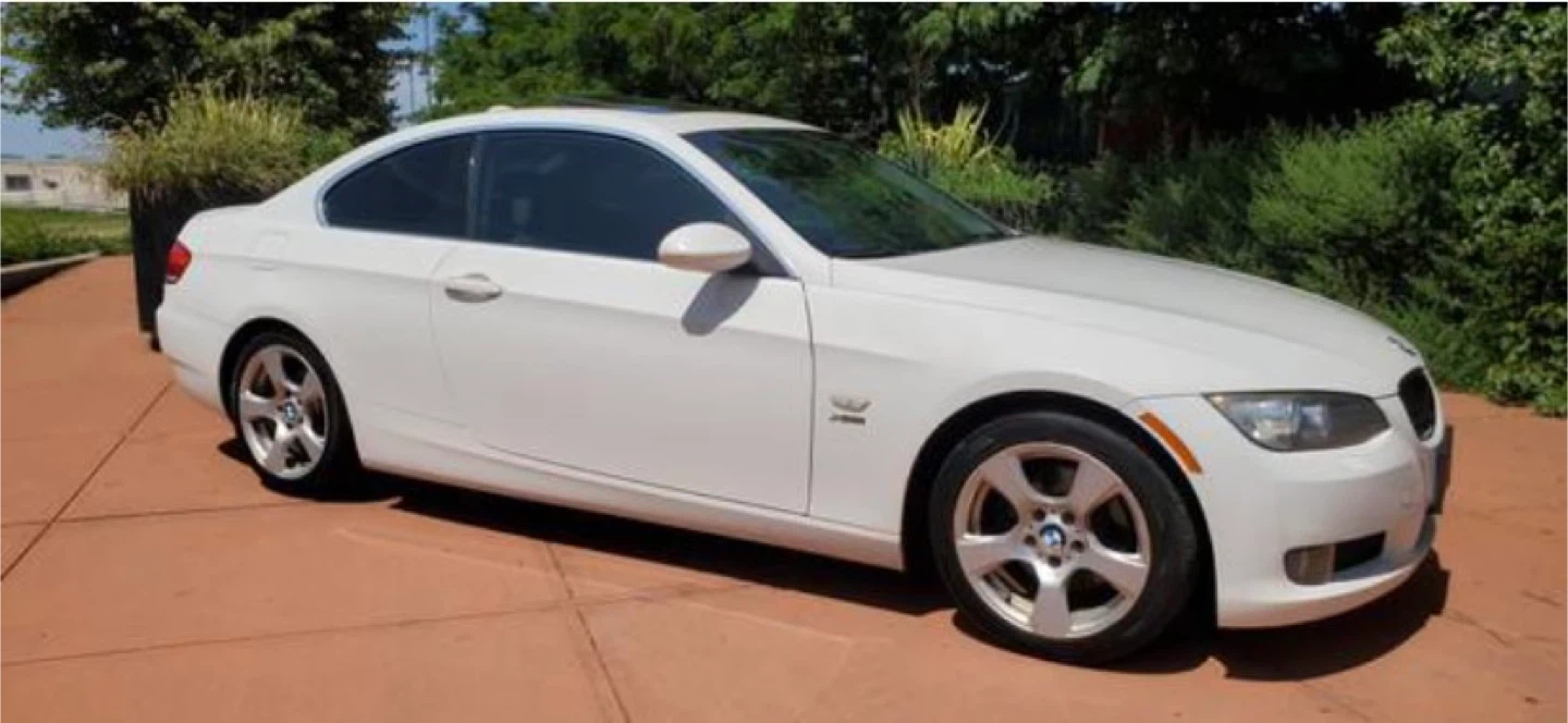 White BMW coupe. This car has a sleek design and is a 2-door model. Runs and drives well. Push start. Sun roof.Mileage available upon request.