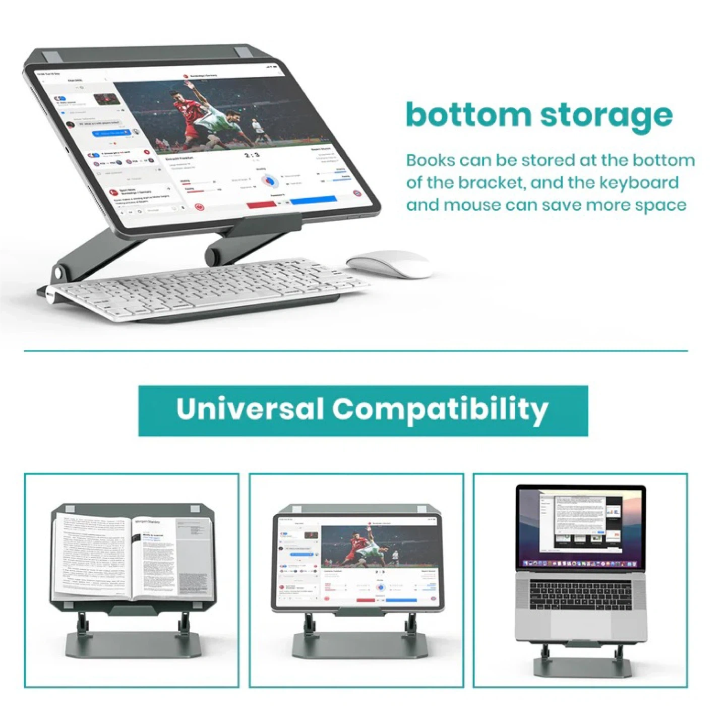- NICE ASSISTANT: Ideal for playing games, watching videos, and reading books. It can be used as a POS stand as well. Books can be stored at the bottom of the bracket and the keyboard and the keyboard and mouse to save more space.