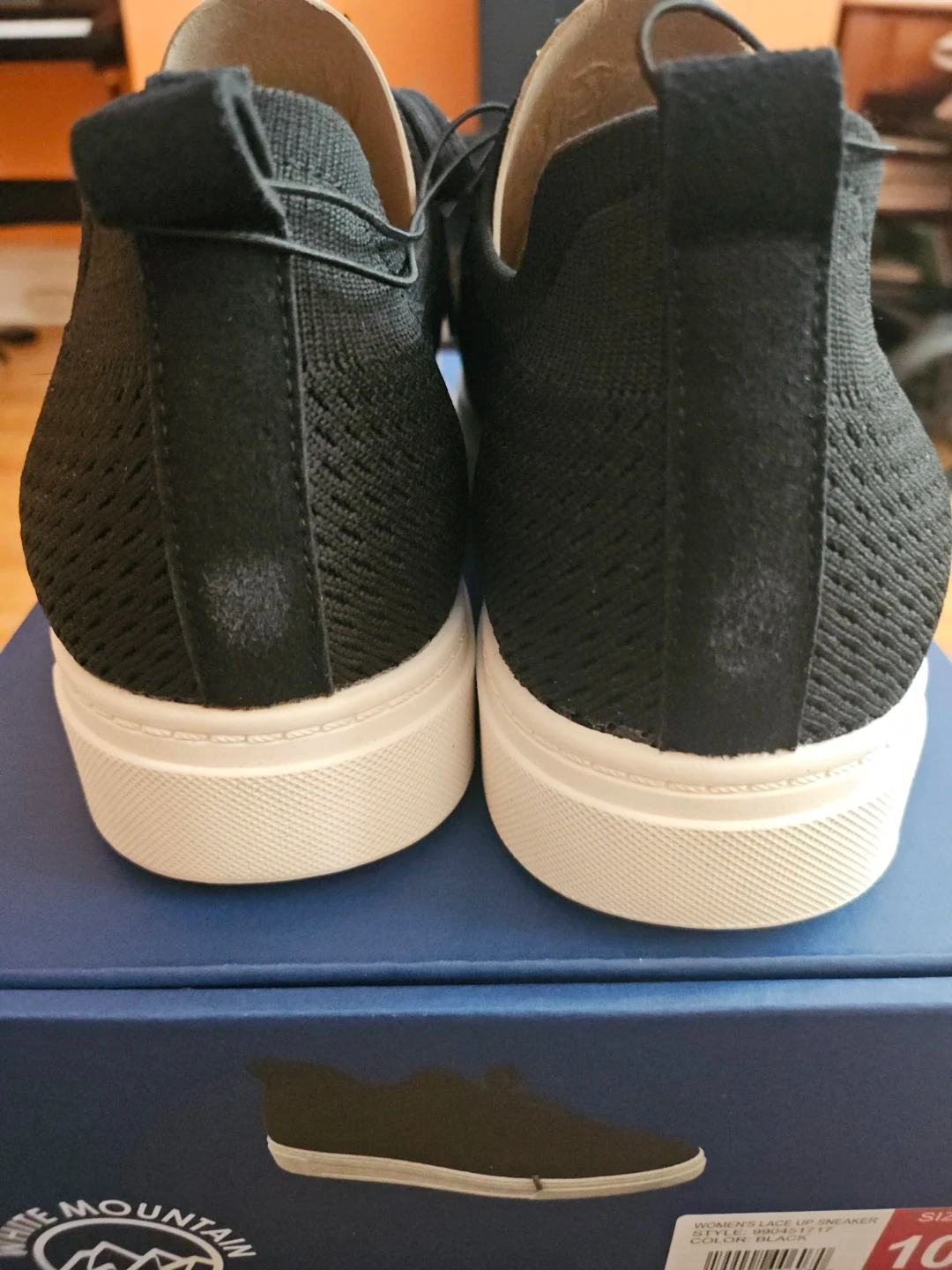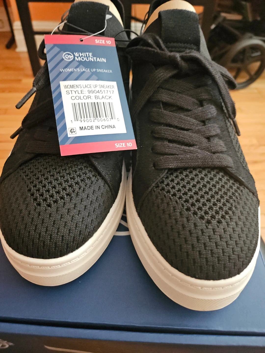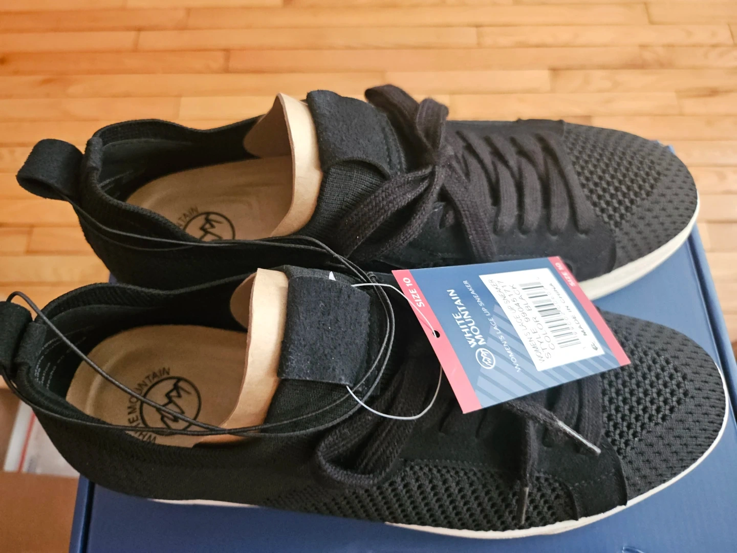 White Mountain women's lace up sneakers in black. These shoes are a size 10 and feature a knit upper with a contrasting white sole. Brand new with tags attached!