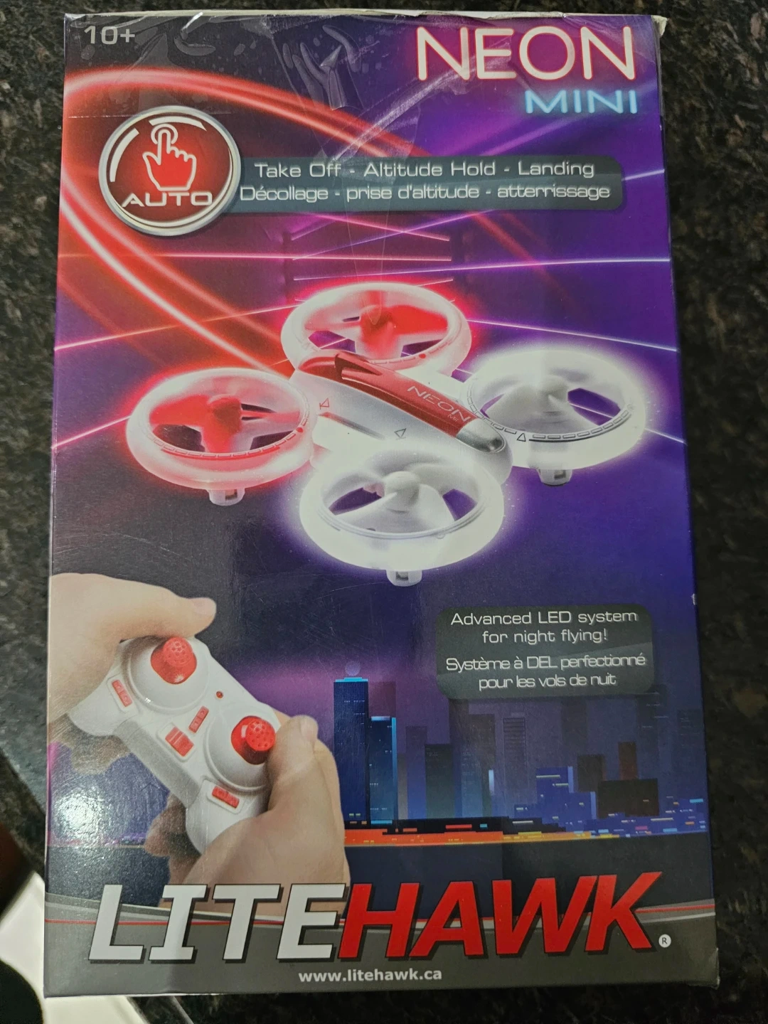 Selling a brand new LiteHawk Neon Mini drone, still in its original packaging! This drone features an advanced LED system for night flying, making it perfect for some nighttime fun. It also has auto take-off, altitude hold, and landing features for easy operation. Box included!