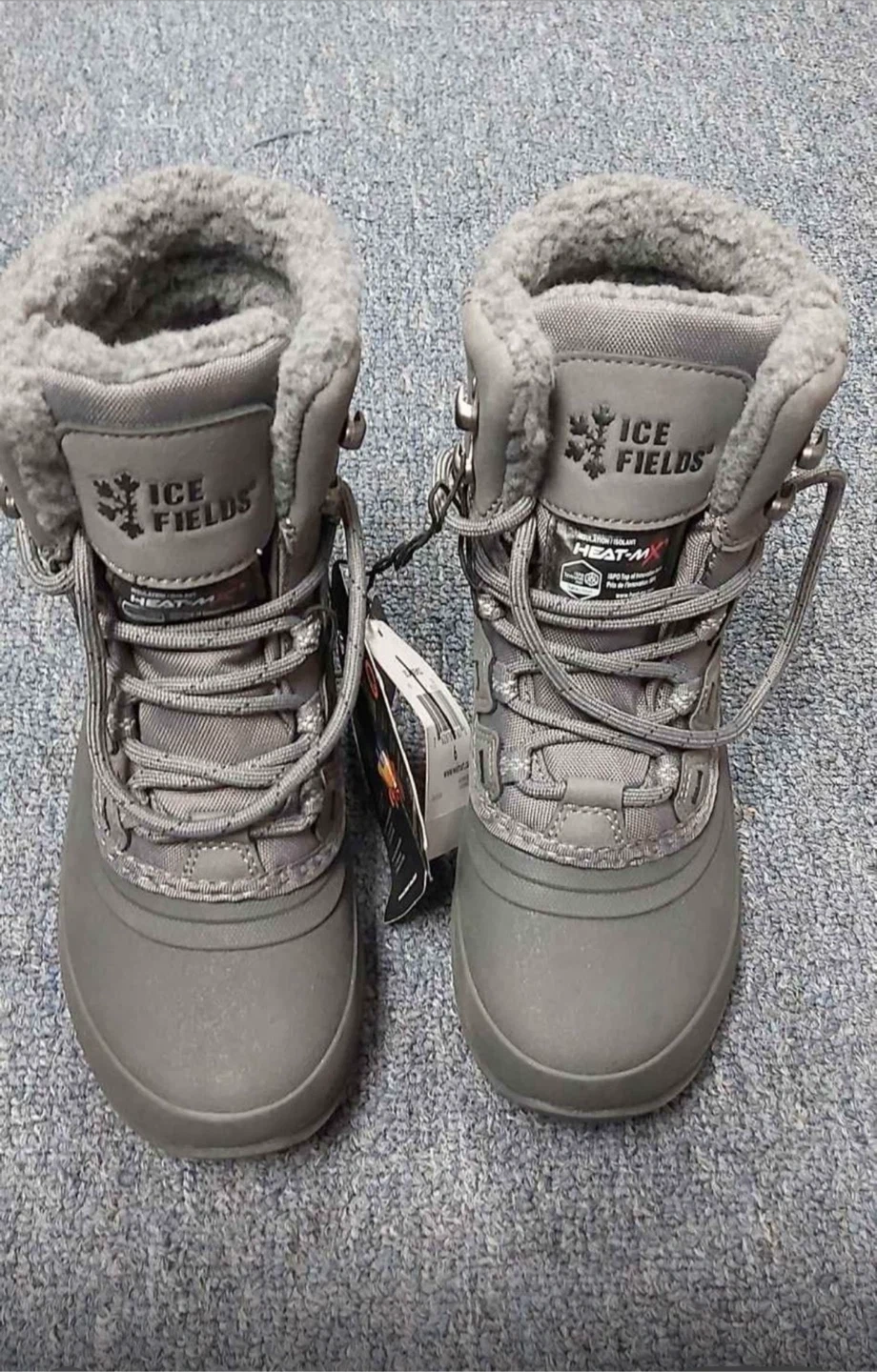 0Keep your feet warm and cozy this winter with these Ice Fields winter boots! They're a stylish grey colour and are a size 7. Perfect for braving the Canadian weather