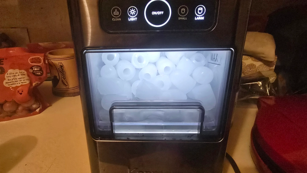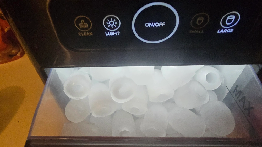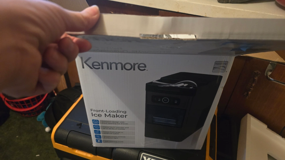 I'm selling a Kenmore Front-Loading Ice Maker. It has a compact design with a front-opening ice drawer. It makes ice in minutes and up to 26 lbs of ice/day. It also has simple touch controls and interior light, plus a self-cleaning mode