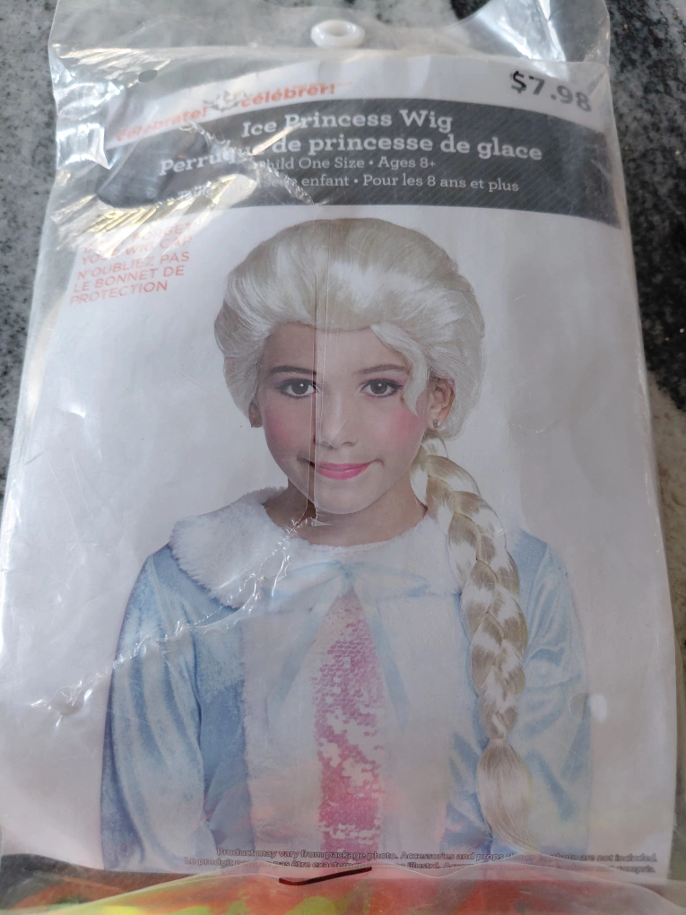 60Selling an Ice Princess Wig, perfect for kids aged 8 and up! It's a child one size and comes in its original packaging. Originally priced at $7.98.