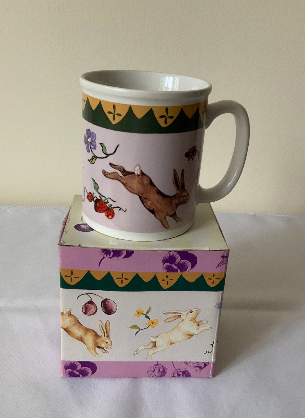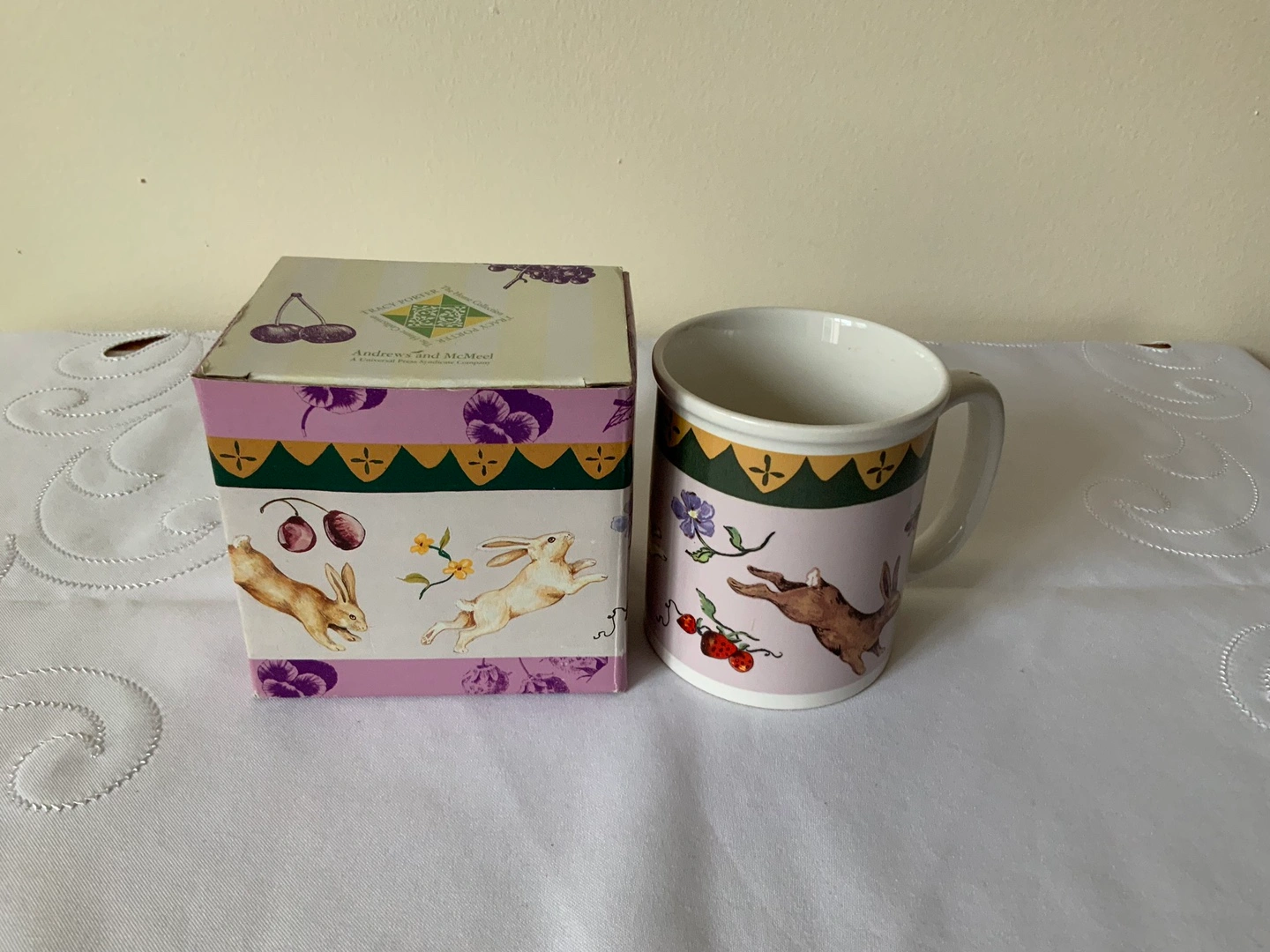 Brand new mug, “vintage rabbit“ ceramic mug, Andrews Mcmeel. Original box included