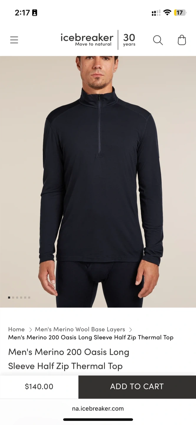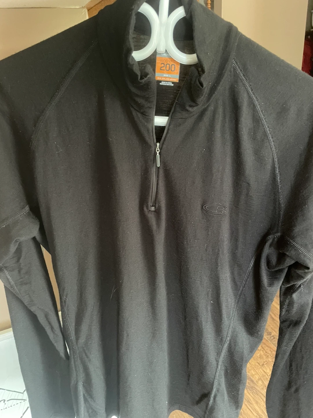 Selling an Icebreaker Merino 200 Oasis long sleeve half zip thermal top in size large. It's a bodyfit style made from New Zealand merino wool. Originally bought for $140