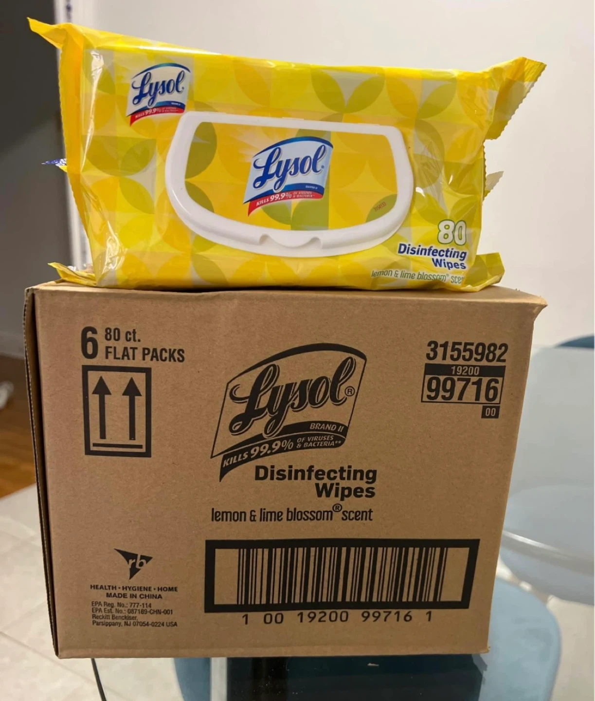 Lysol disinfecting wipes in lemon & lime blossom scent. Kills 99.9% of viruses and bacteria. Each flat pack contains 80 wipes. Includes 6 flat packs.