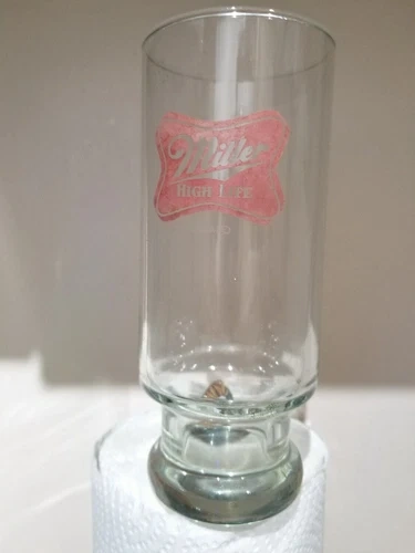 Up for grabs is a vintage Miller High Life 9oz beer glass. It has a heavy bottom base and no glass damage. The red logo is a bit worn. Feel free to message if you have any questions!