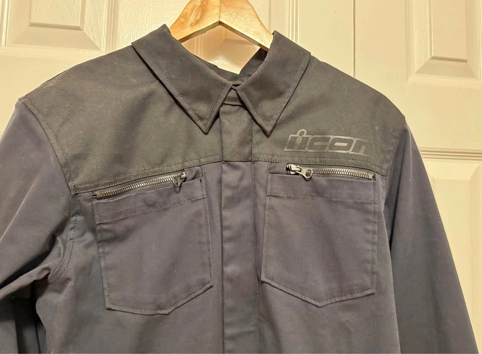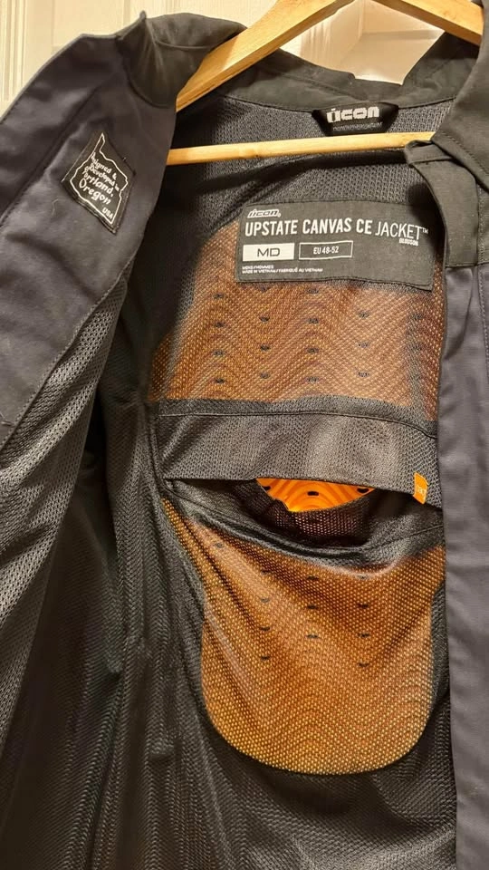 Used one season, light use. Black, men's size medium. - Clean, casual, minimal styling - Icon® Relaxed fit, provides all-day riding comfort - Tested and certified to EN 17092-4:2020 class A - Durable 400D polyester and cotton stretch canvas shell, abrasion-resistant overlays - Removable D30 Viper Back; Elbow and Shoulder LP1 Impact Protectors - EN 1621-2:2014 / EN 1621-1:2012 - YKK® Zippers, 300D Polyester Reinforcements in Elbows & Shoulders