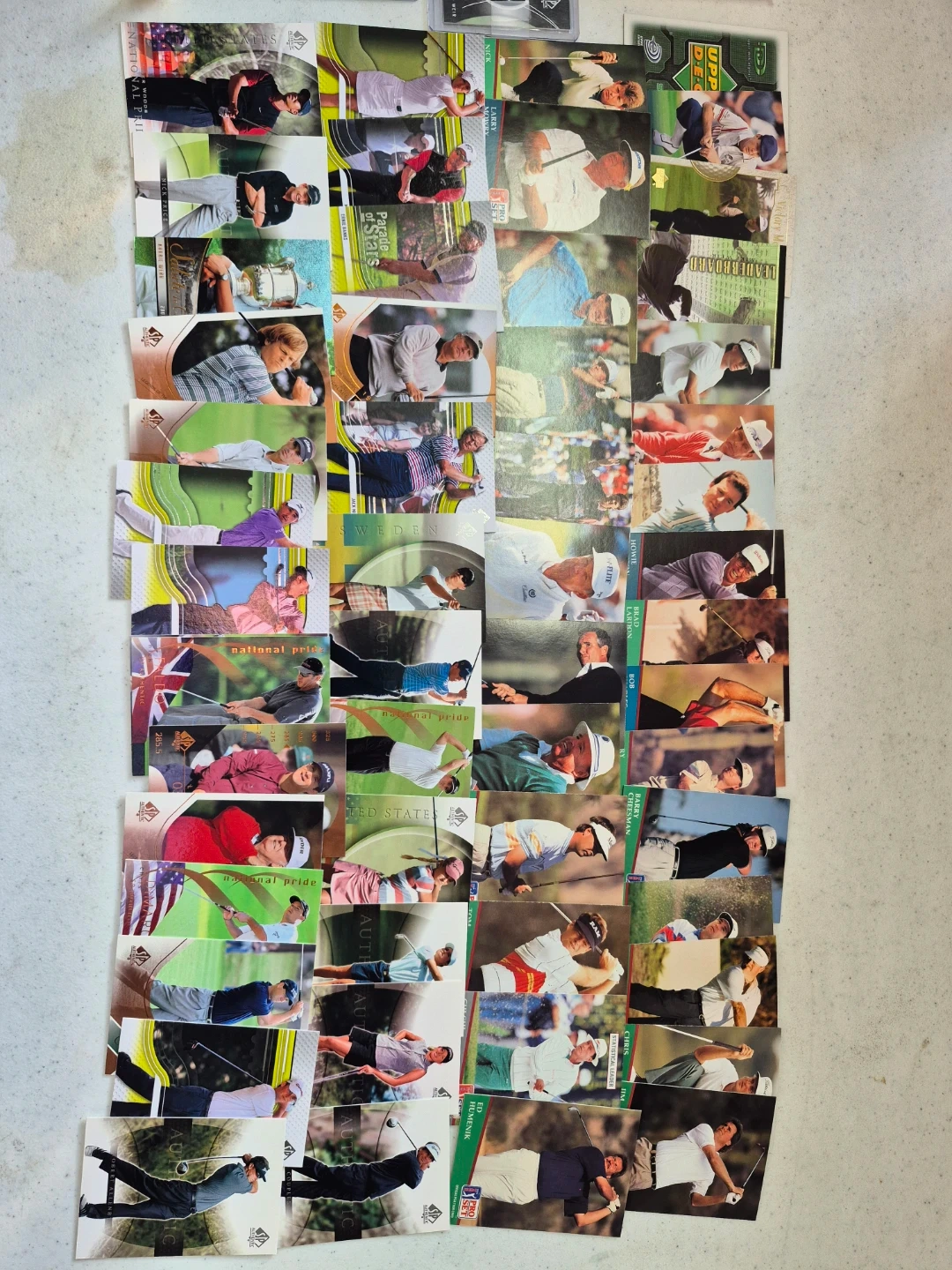 I'm selling a collection of golf trading cards. They feature various golfers and designs. Great for collectors or golf enthusiasts!