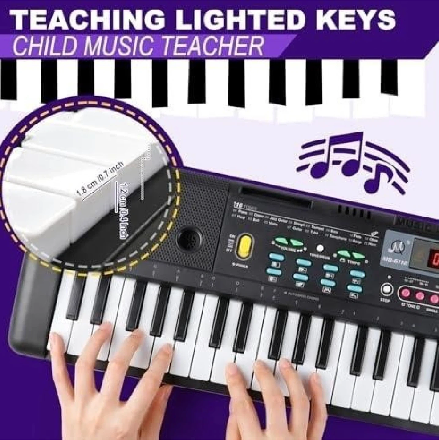 This brand new in-box kids' electronic keyboard piano featuring 61 keys, perfect for introducing children to the world of music! The keyboard has an LCD screen and teaching lighted keys.