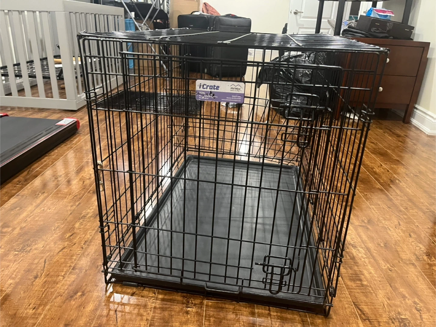 Selling a large iCrate dog crate in great condition! It's perfect for providing a safe and comfortable space for your furry friend. It comes with a divider panel and a removable plastic pan for easy cleaning