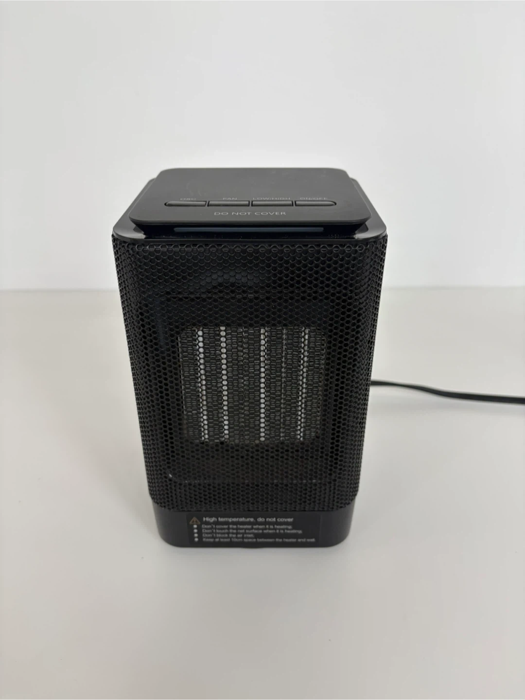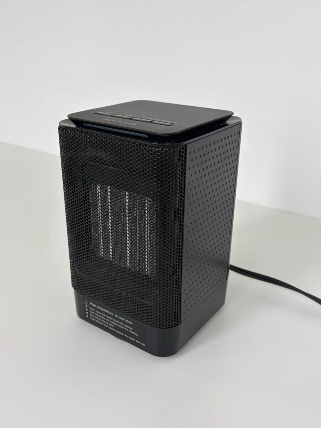 Small and simple, has a spinning mode, cool (fan) and warm/hot mode (heater).