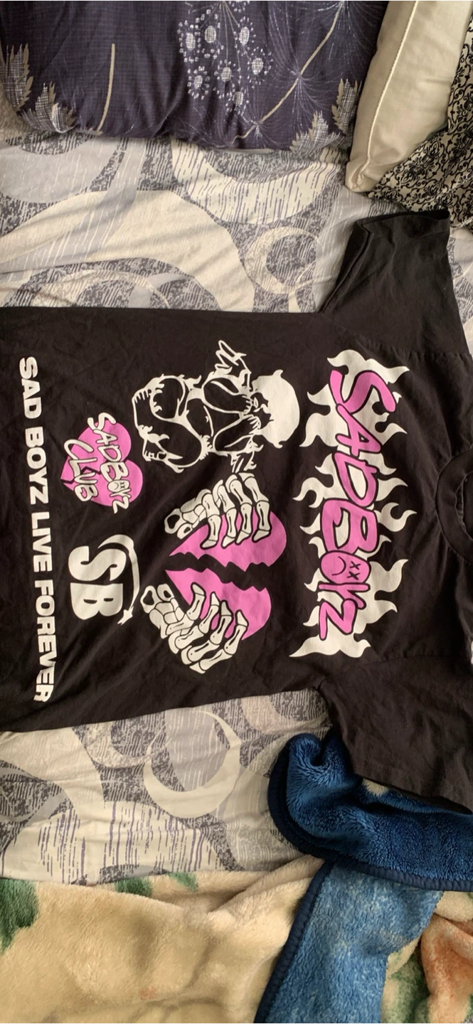 Selling a black Sad Boyz Club T-shirt. The shirt features graphics on both the front and back. It's in great condition and ready for a new home