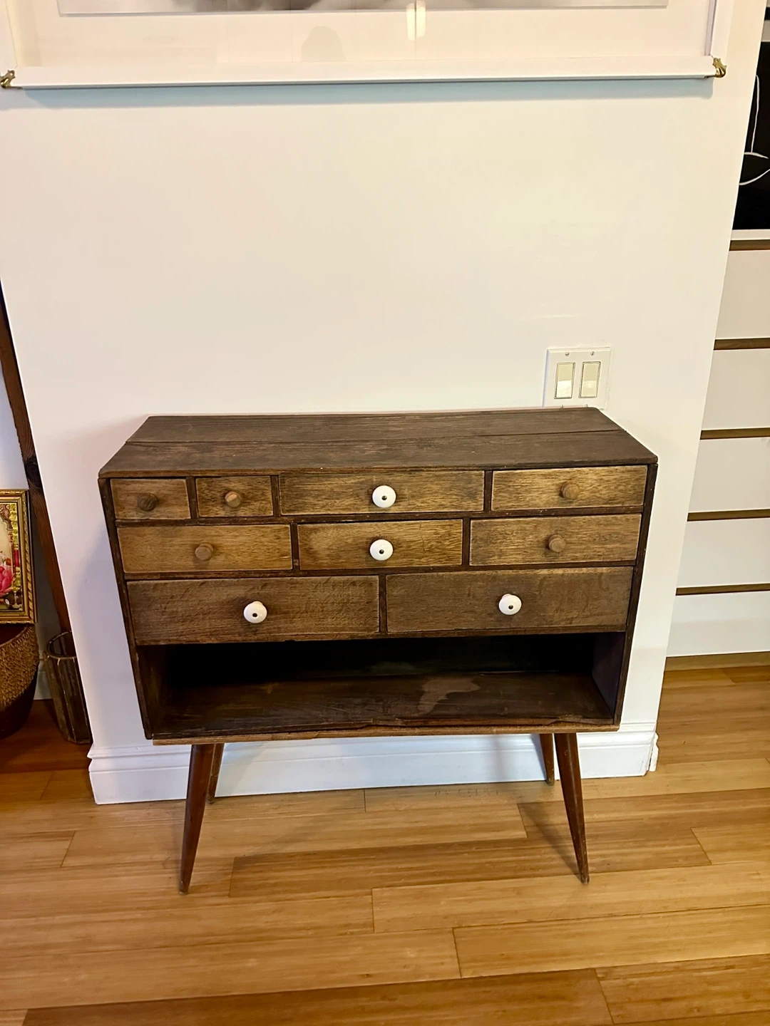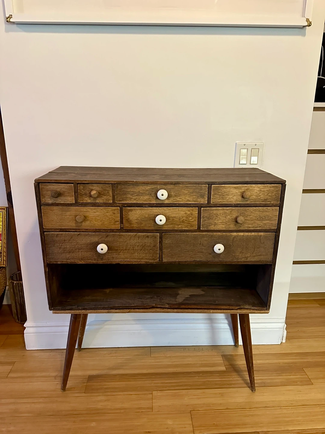 A super cool apothecary drawer unit. Its a unique hand made piece and great for vintage rustic decor.