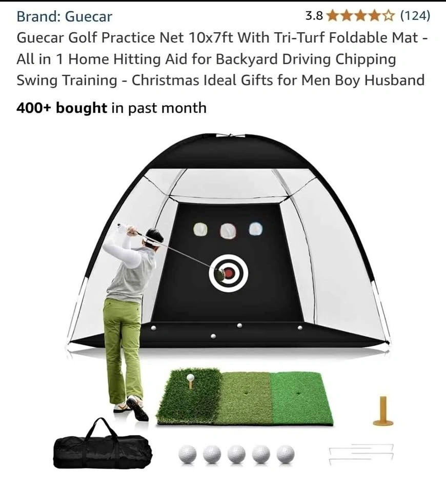 YOU WILL GET: 10 x 7 x 6 ft Golf Hitting Net; 1 x Impact golf target, 1 x Tri-turf golf mat; 5 x golf balls; 1 x golf tee, 1 x carry bag. Our practice net with hitting mat is an ideal golf training equipment to practice your skills like Driving, Swing and Chipping, etc. An outstanding way to practice every club in your golf bag easily at home / outdoor, saving money and time.