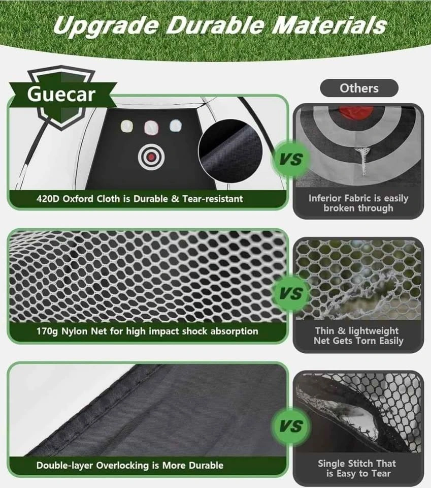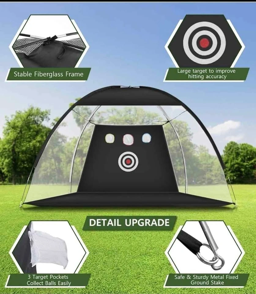 Our golf net is large enough to handle most drives at a distance. We set up extra three targets for hitting. Whether you are an entry-level player, a beginner, or an advanced player, one big target can practice our basic skills. Three higher small targets can make our skills more exquisite and target hitting more accurately. This golf net will help you to practice the strength and accuracy of chipping, driving, swings safely in the backyard, indoor or outdoor.