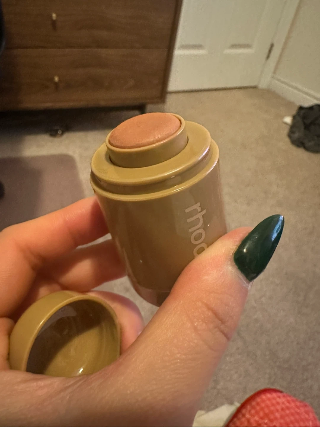 Rhode Pocket Blush in the shade frekcle. It's a cream blush stick designed for easy application.