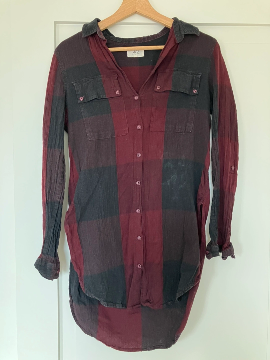 I'm selling a Q/S designed by flannel shirt. Goes great with leggings. The shirt is a size 36 (small) and is in good condition. It's perfect for layering or wearing on its own!