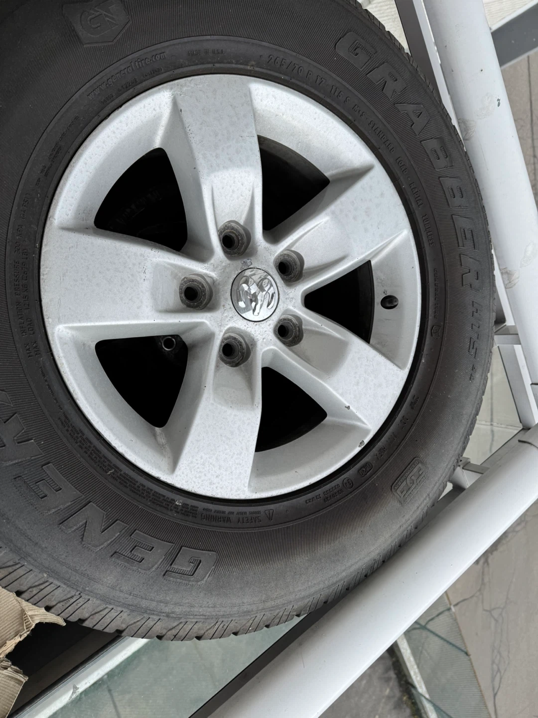 4 Ram tires. This is a single Grabber AT2 tire and rim. Tire size is 265/70R17. It's a standard load radial tire with M+S rating.