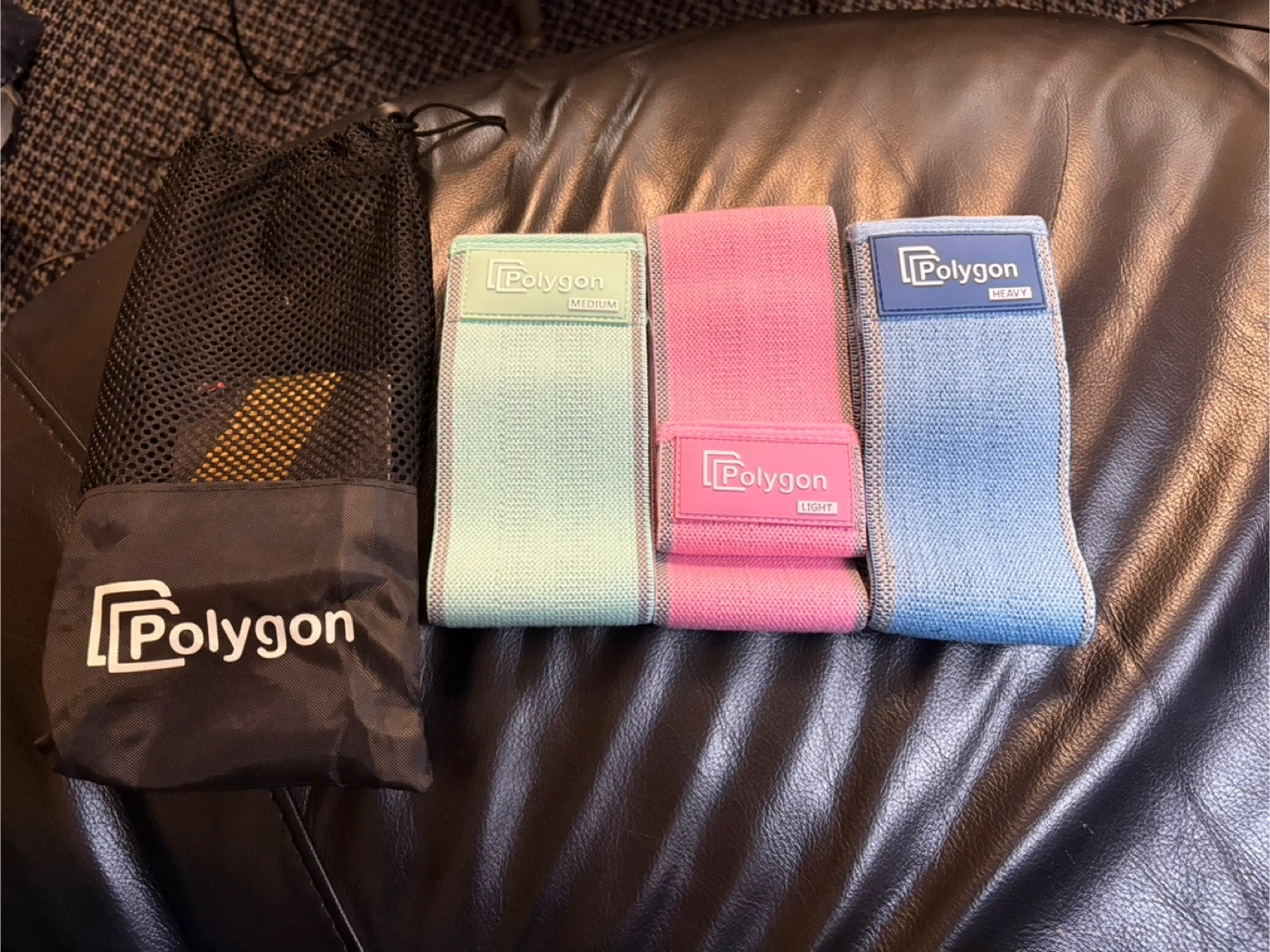 This set includes three Polygon resistance bands in light, medium, and heavy strengths. They come with a convenient mesh carrying bag. These bands are great for a full-body workout at home or on the go!