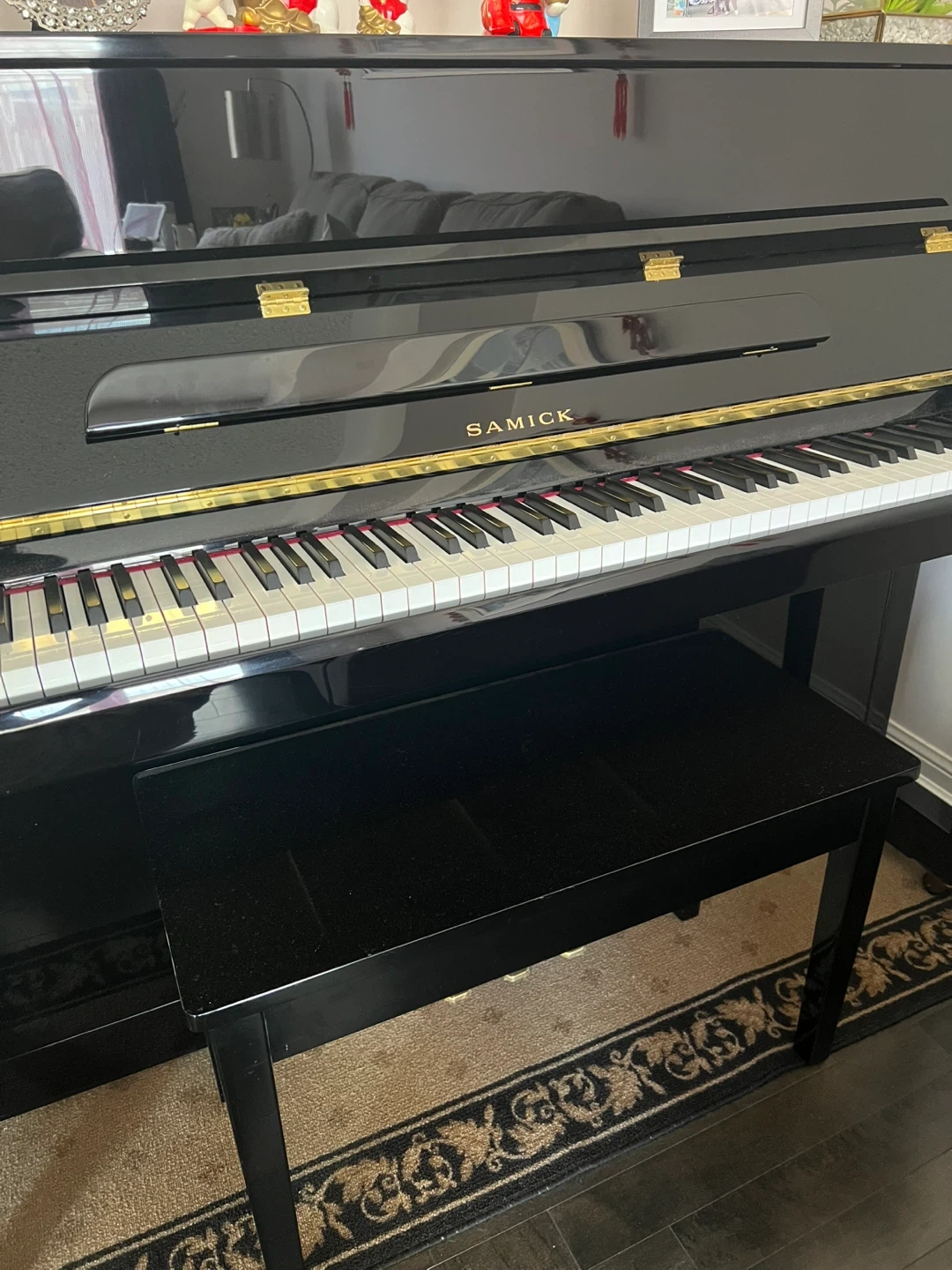 Buy & SellSamick Upright Piano with BenchSamick Upright Piano with Bench$2,728Upright piano from Samick in black finish. It has a matching black bench. This piano is great for learning or practice!WHERE TO MEETCheck LocationView MapSELLERIvanWillmott211 review0 chats·0 favorites·14 viewsSEND CHAT TO SELLERHi Ivan! I’m interested in your listing.Hi Ivan! I’m interested in your listing.Get the Karrot app to chatSign In to chat