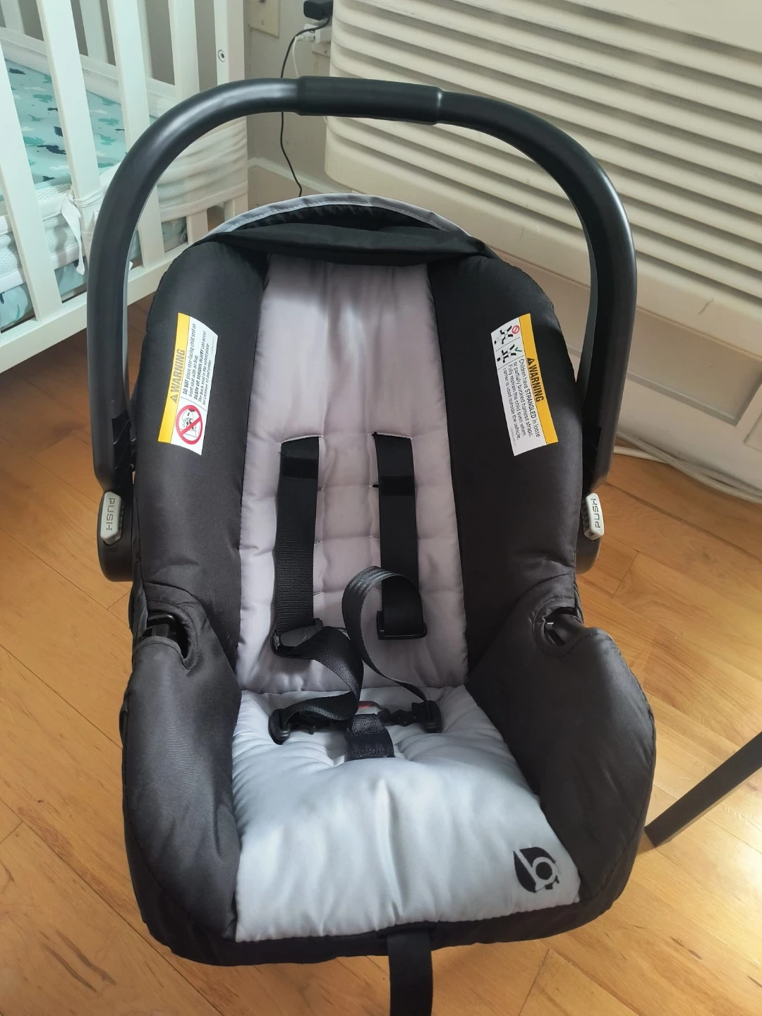 Selling a Baby Trend infant car seat in great condition! This car seat is perfect for keeping your little one safe and comfortable while on the go. It's black and gray. It is designed for infants.