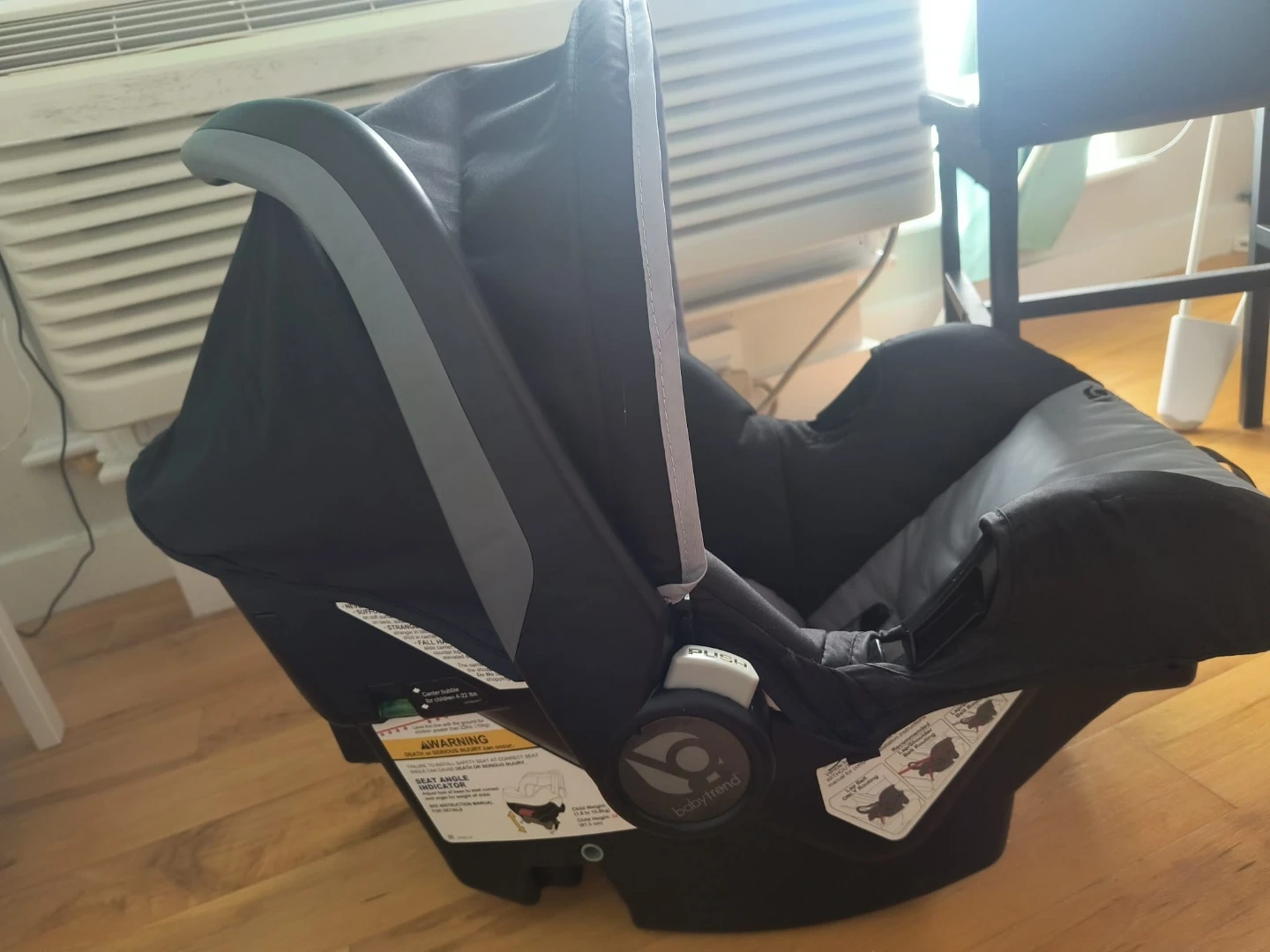 Selling a Baby Trend infant car seat in great condition! This car seat is perfect for keeping your little one safe and comfortable while on the go. It's black and gray. It is designed for infants.