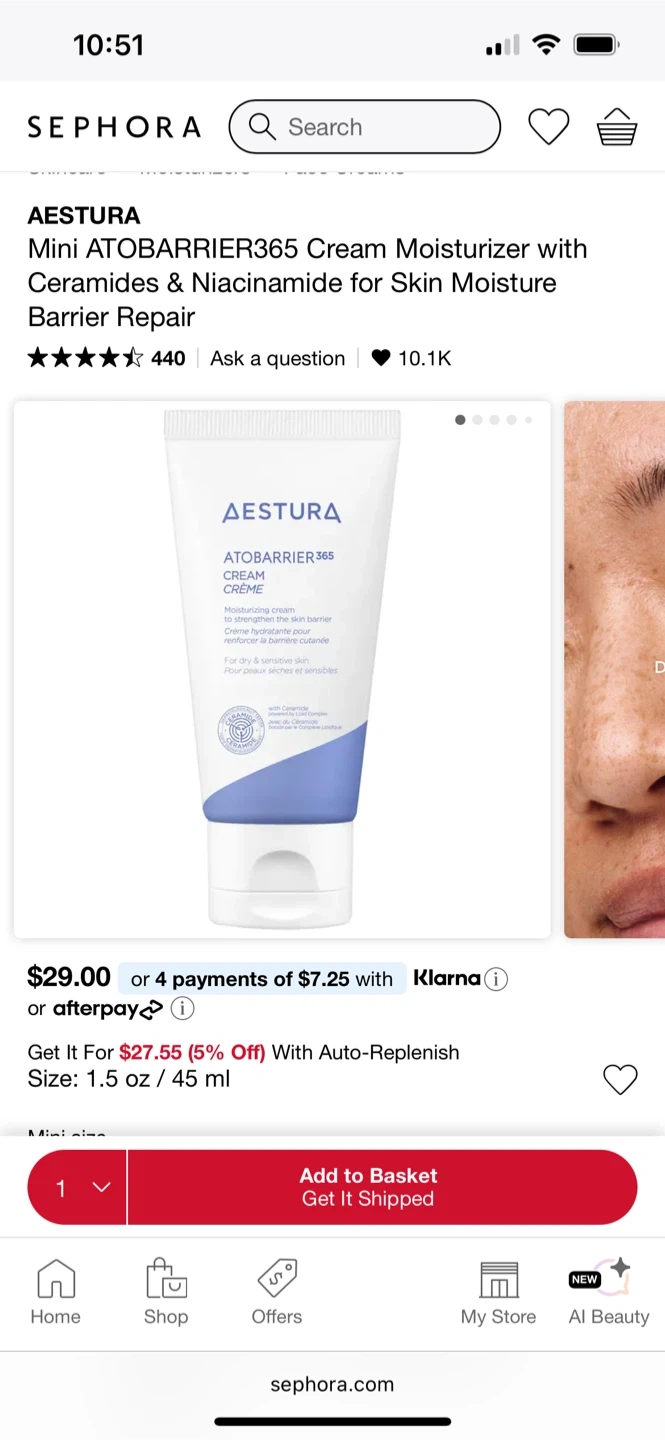 Buy & SellAESTURA Mini ATOBARRIER365 Cream Moisturizer 30MLAESTURA Mini ATOBARRIER365 Cream Moisturizer 30ML$15Selling 30ml size 45ml goes for $29+tax Firm price Meet up near king stationConditionNewWHERE TO MEETMeet nearbyView MapSELLERHeatherOld Toronto1000+212 reviews0 chats·2 favorites·20 viewsSEND CHAT TO SELLERHi Heather! I’m interested in your listing.Hi Heather! I’m interested in your listing.Get the Karrot app to chatSign In to chat