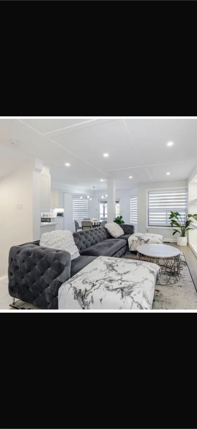 Dark Grey Velvet Tufted Sectional Sofa with Marble Ottomans