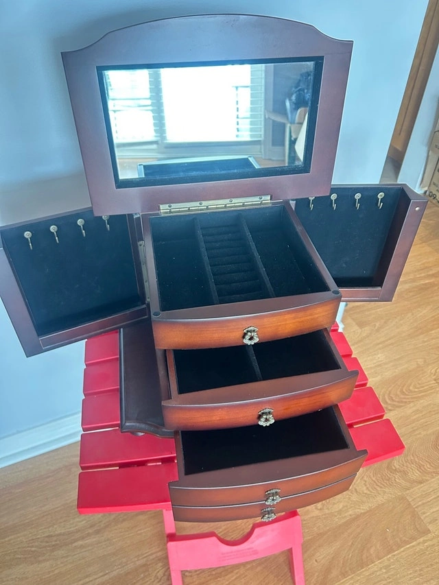 Very good condition. Lots of room to store rings, watches, earrings, and necklaces, etc.