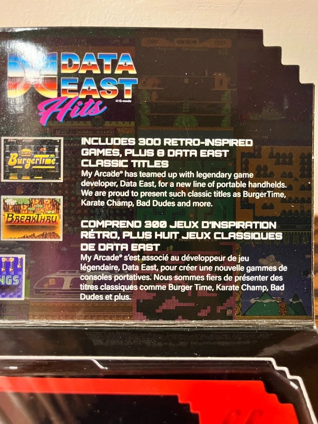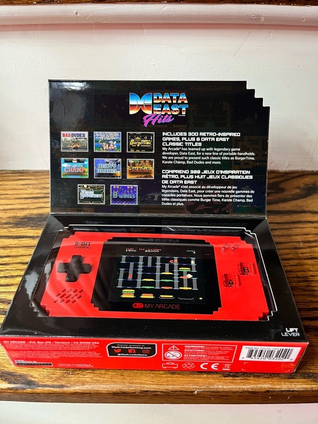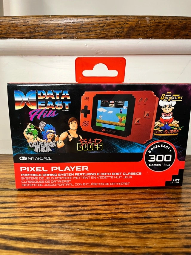 Selling a new My Arcade Pixel Player, a portable gaming system pre-loaded with 300 retro-inspired games, including 8 classic Data East titles! This compact console is perfect for on-the-go gaming and reliving the glory days of arcade classics. Included Data East titles: Bad Dudes, Burger Time, Karate Champ, Heavy Barrel, Break Thru, Side Pocket, B-Wings. Whether you're looking to relive your childhood or discover classic games for the first time, this Pixel Player is a fantastic choice. Check out my other listings for more cool stuff!