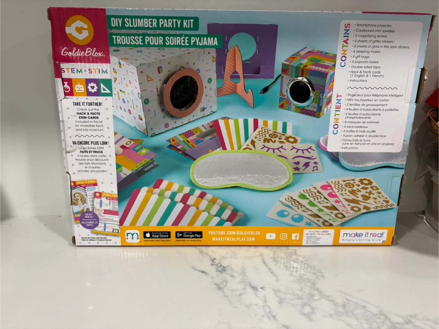 Selling a brand new GoldieBlox DIY Slumber Party Kit! It's the perfect activity for sleepovers and includes everything you need to build a projector and speaker. Great for kids 8+ and contains 31 pieces to get creative with