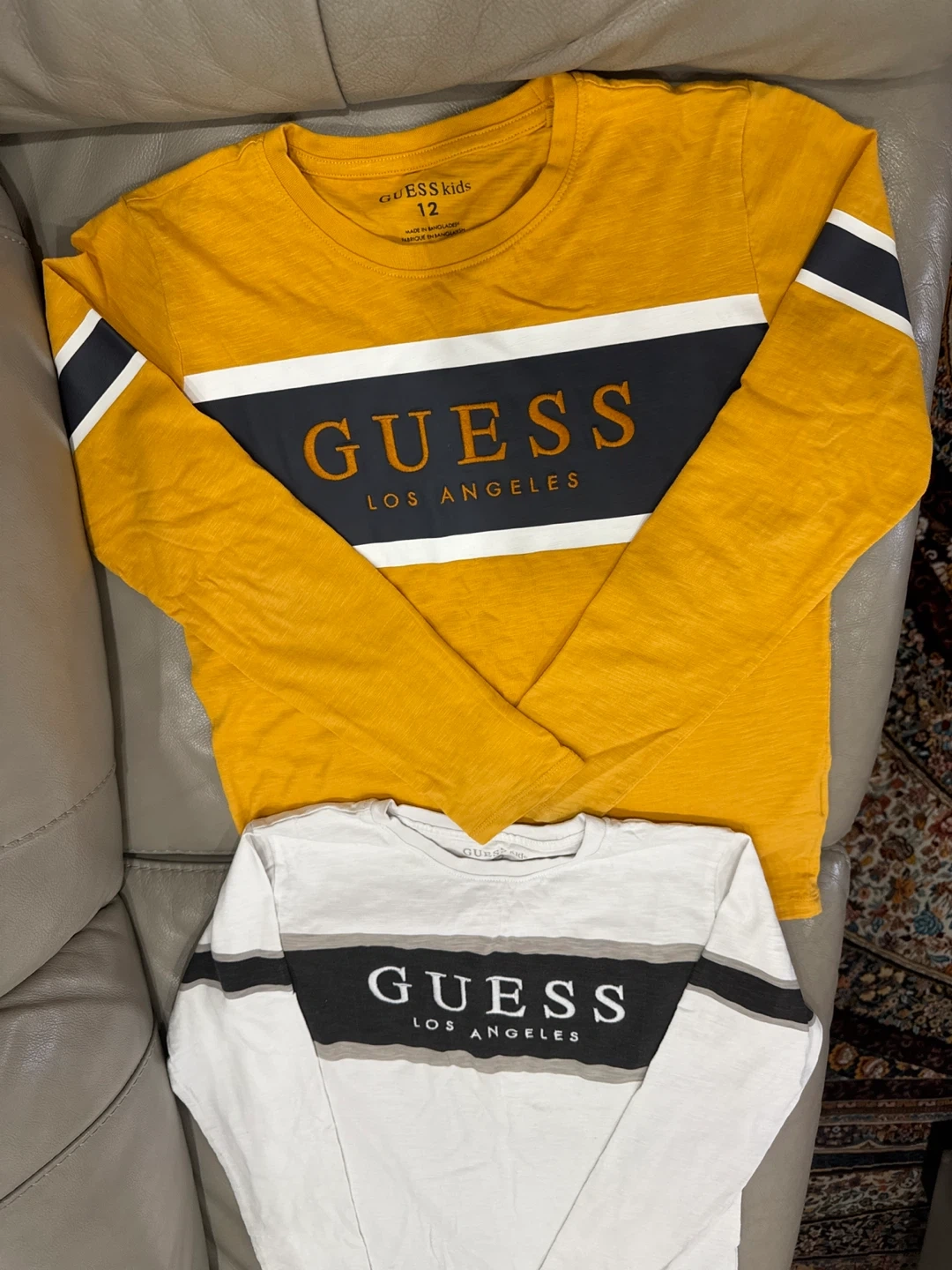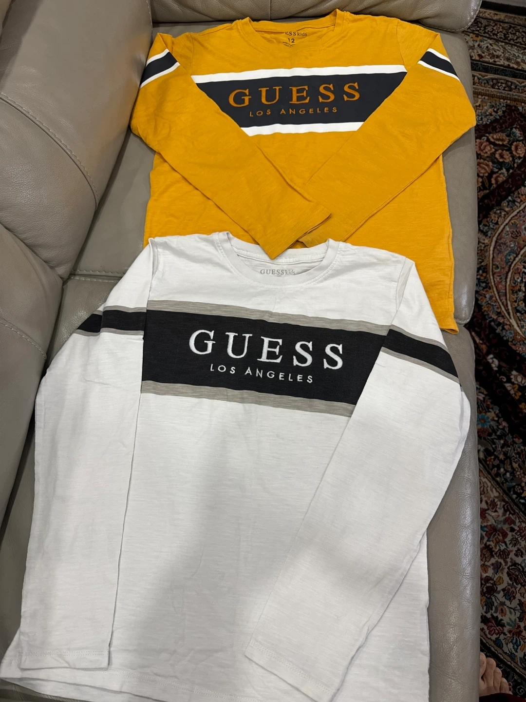 Like new . Two Guess Kids long sleeve shirts, one yellow and one white. Both shirts are size 12 . Each $8 , for both $15. Pick up at Birkdale rd. Midland and Lawrence, Scarborough