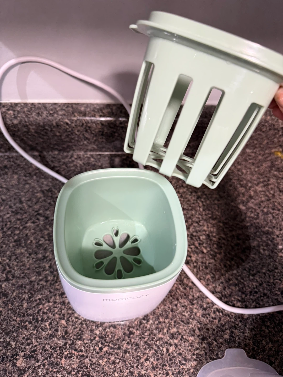 Selling a Momcozy baby bottle warmer in great condition! This warmer is designed to quickly and safely heat up baby bottles. It's a convenient tool for feeding time, especially during those late-night feedings. It's easy to use and clean, making it a great addition to any nursery