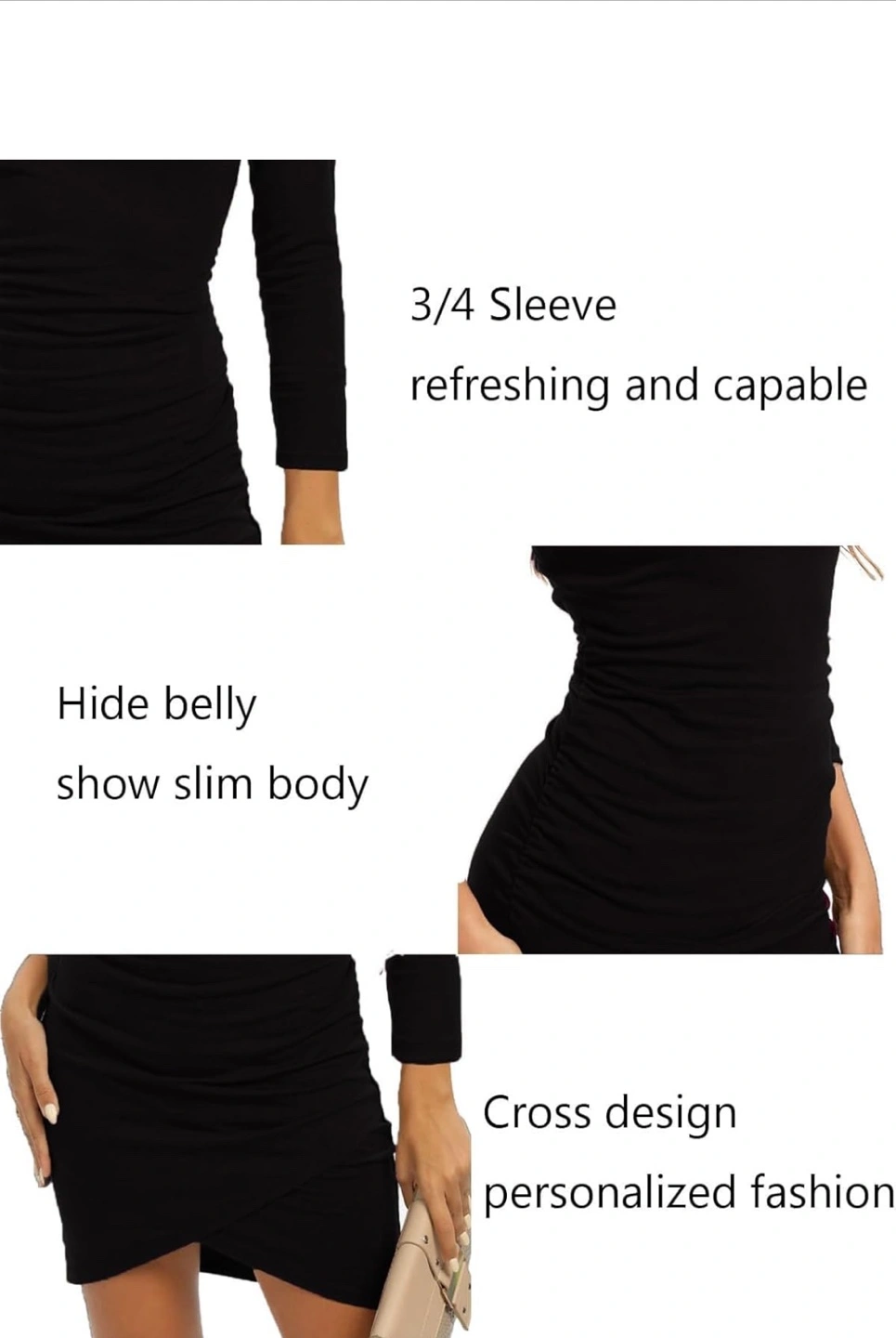 Form-fitting mini dress. Features long sleeves and a ruched design. Cross design detail. Perfect for a night out.