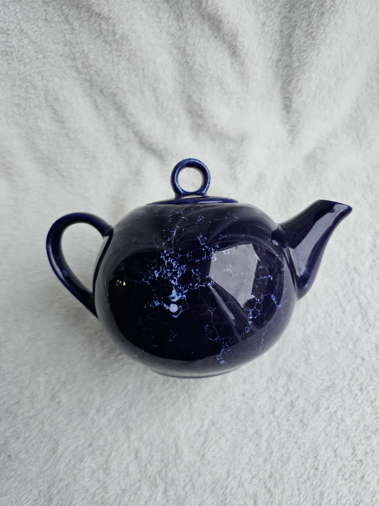 Vintage Japanese Blue Bubble Glaze Ceramic Teapot